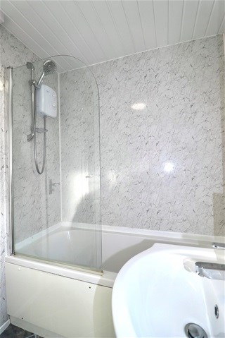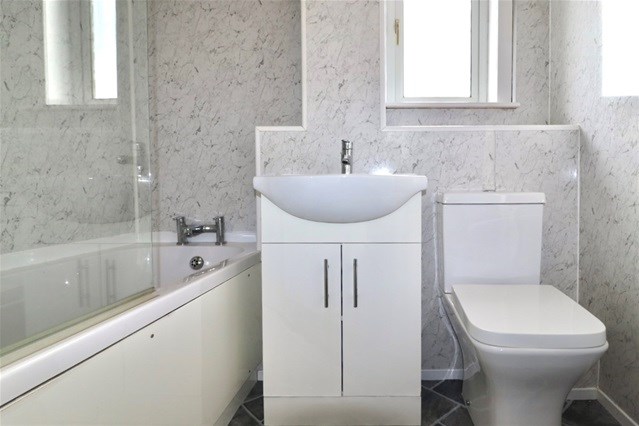 Upstairs, the property comprises two generous double bedrooms and a third smaller bedroom, ideal as a nursery, home office or study, which benefits from built-in storage. The modern family bathroom is fitted with a contemporary three-piece suite and electric shower over the bath.