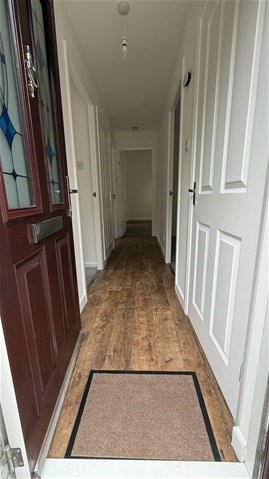 - Entrance hall with wood effect laminate flooring, large storage/boiler cupboard.