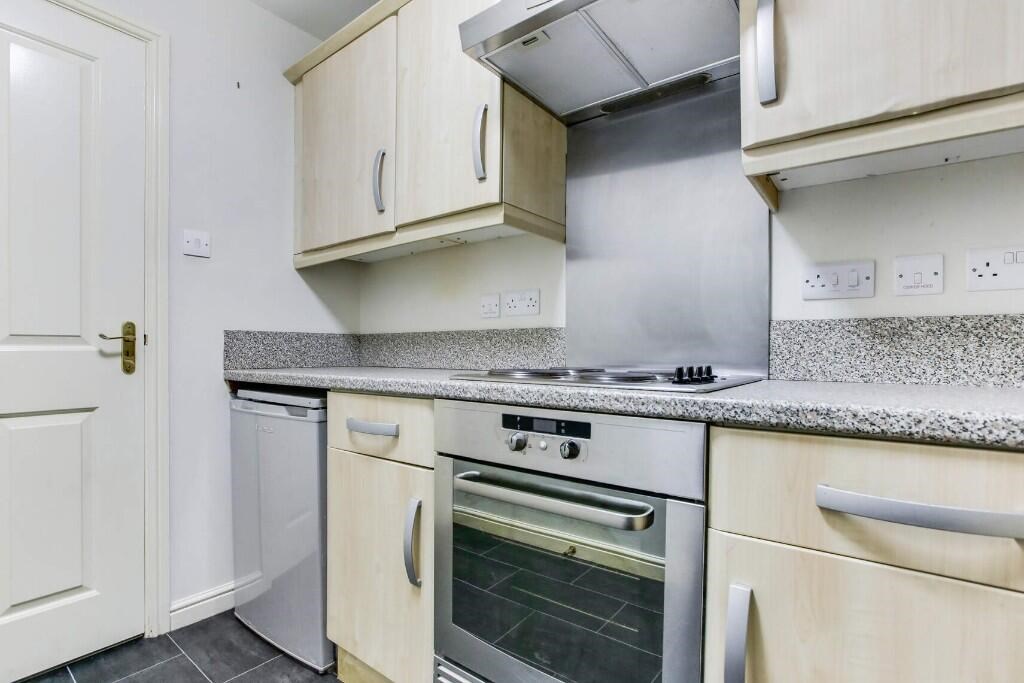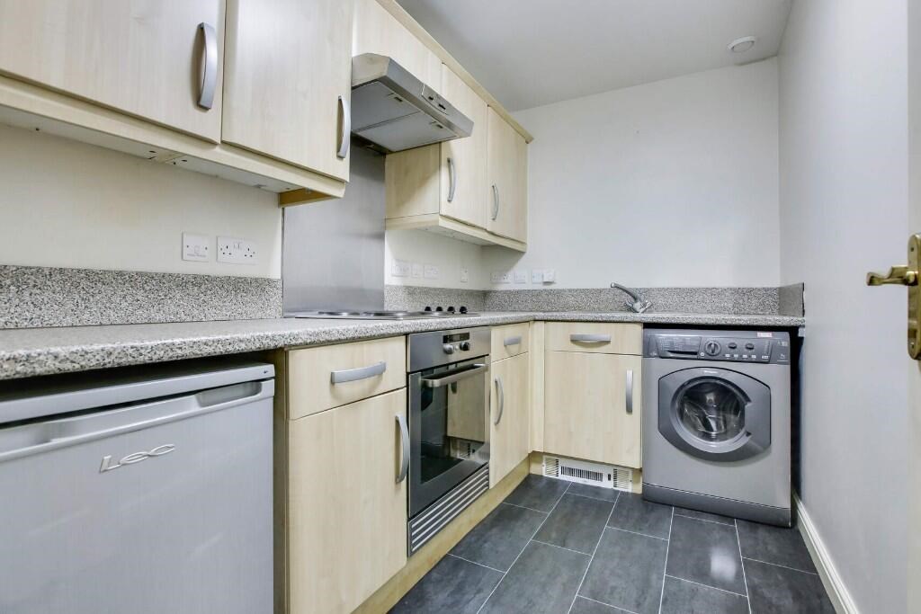 The kitchen is fitted with a range of wall and base units with stainless steel sink and drainer, co-ordinating worksurfaces and upstand to splashback. The electric hob, oven, cooker hood, fridge and washing machine are included.