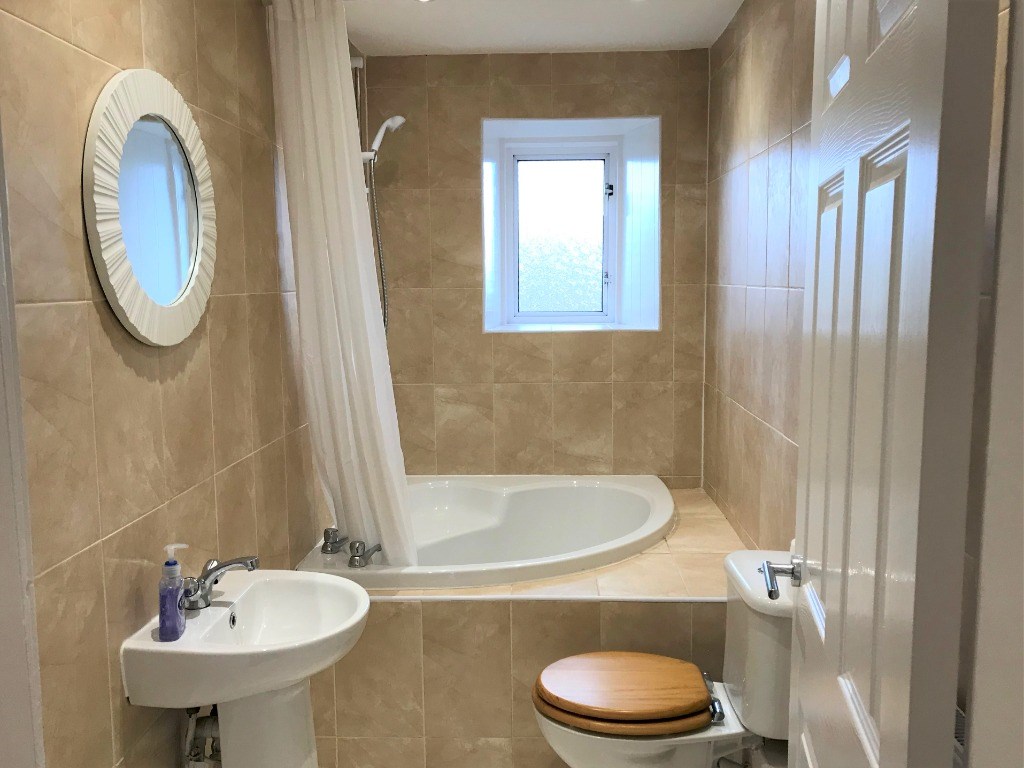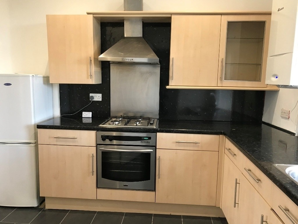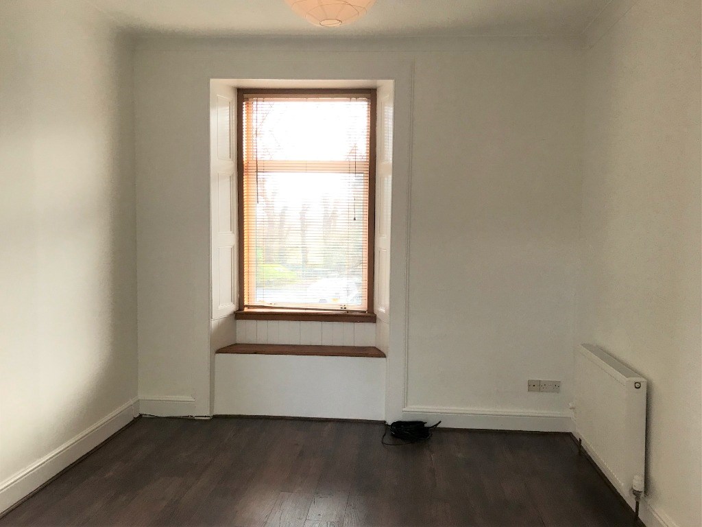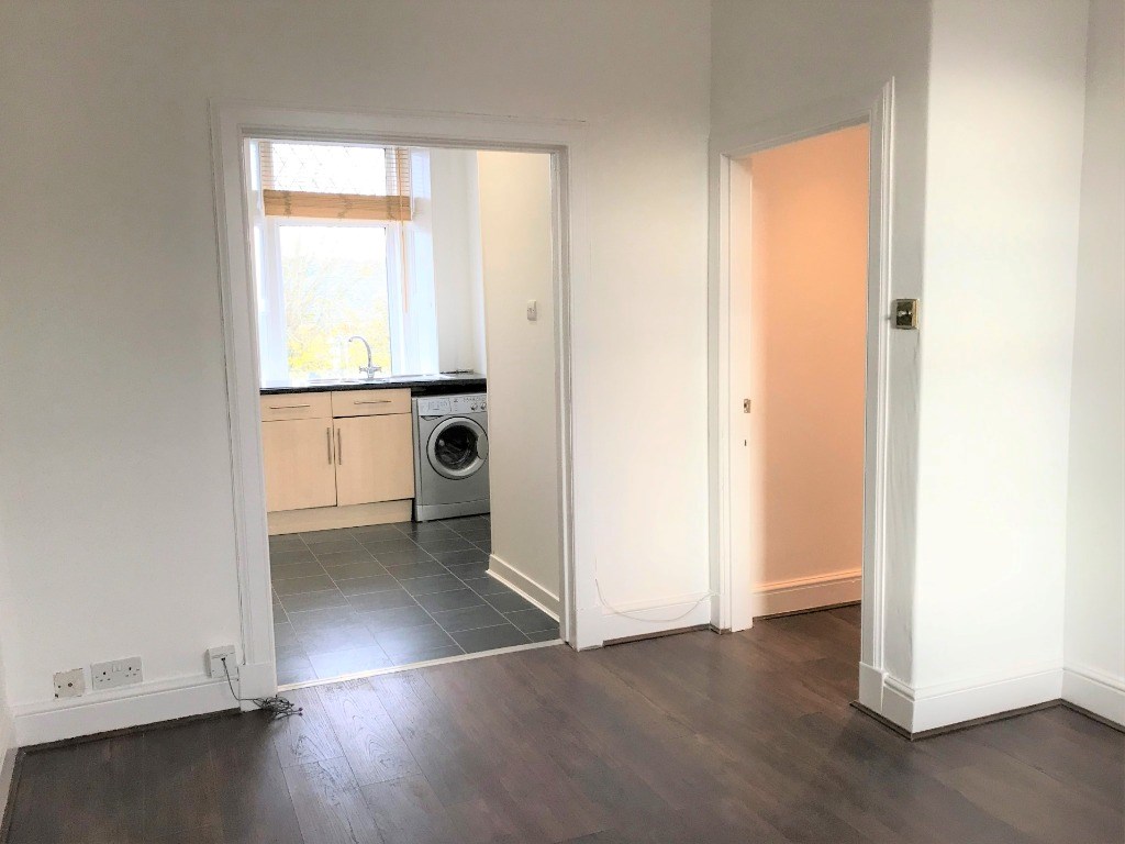 The property is comprised of a spacious and bright living room, a fitted kitchen with appliances, one bedroom, and a bathroom with a shower over the bath.