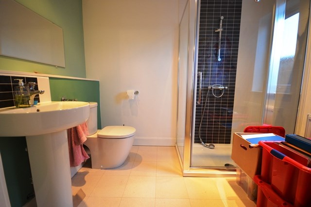 ~Family bathroom with electric shower over bath