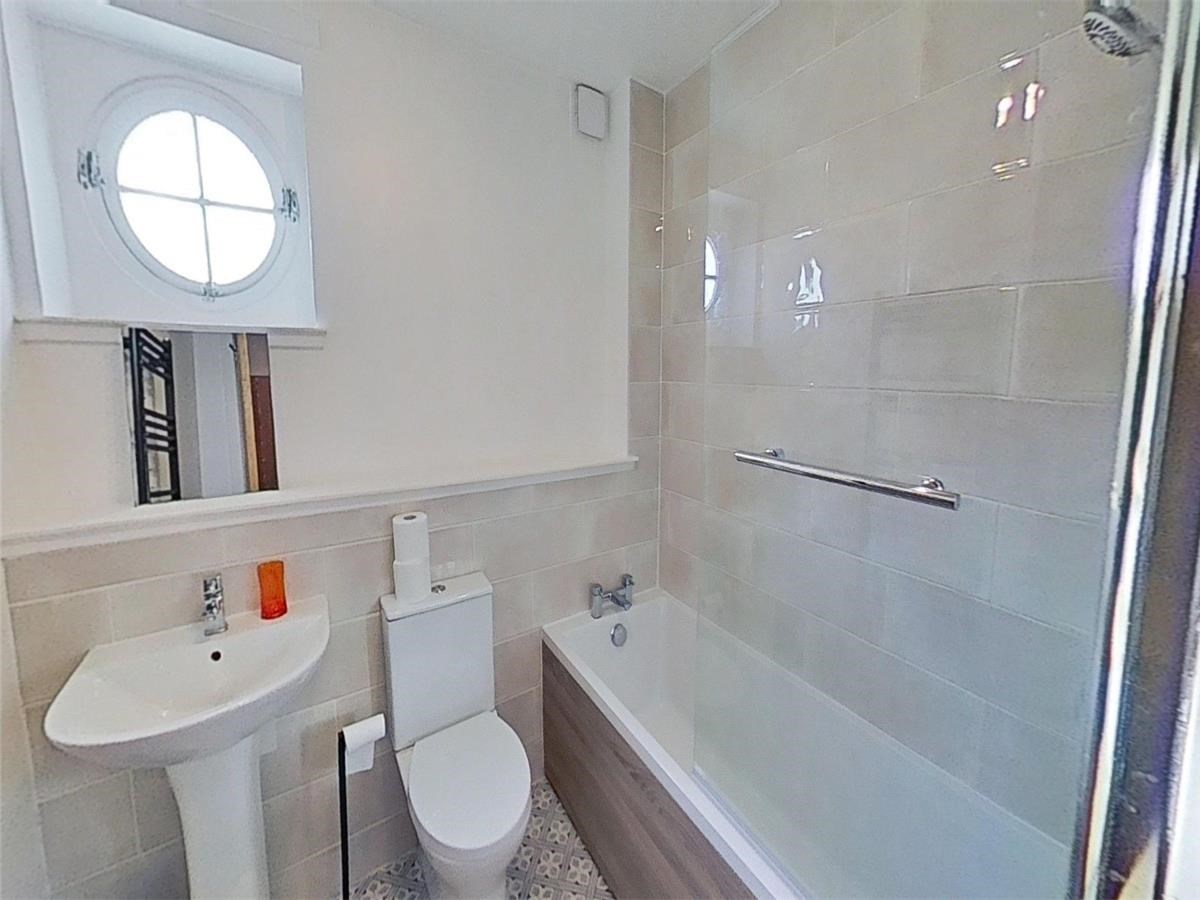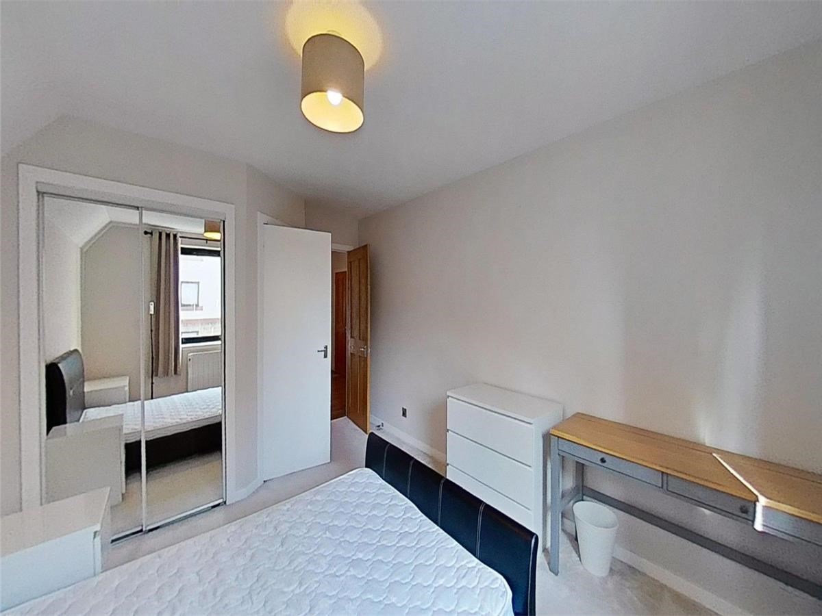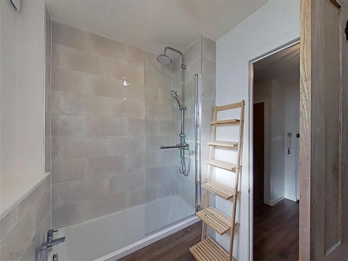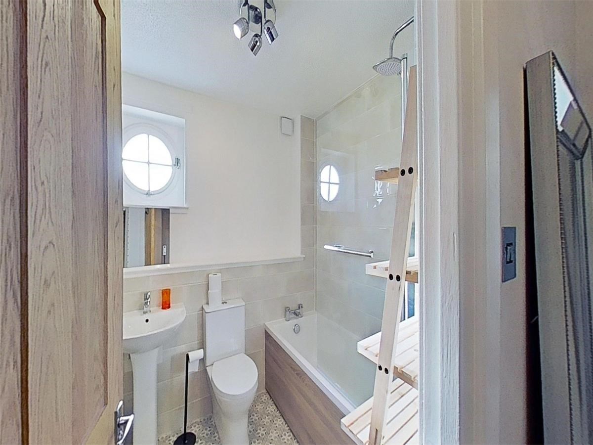 Both double bedrooms feature built-in mirrored wardrobes and ample floorspace for additional furnishings. The master bedroom enjoys the added luxury of a two-piece en-suite shower room. Completing the layout is a stylish three-piece bathroom with an overhead shower, accessible from the hallway.
