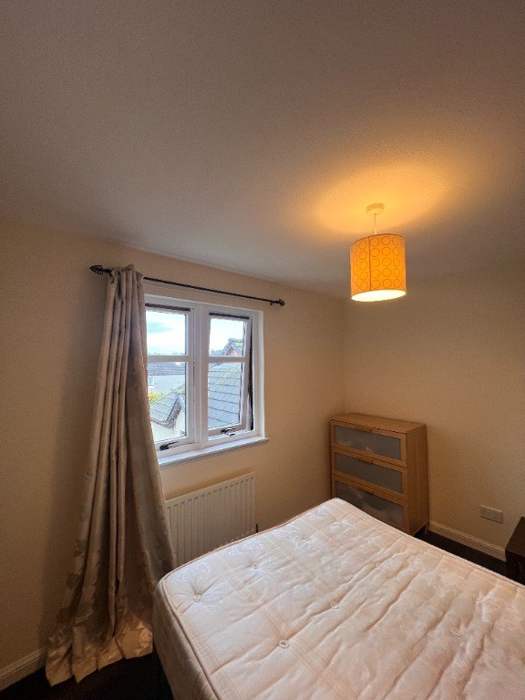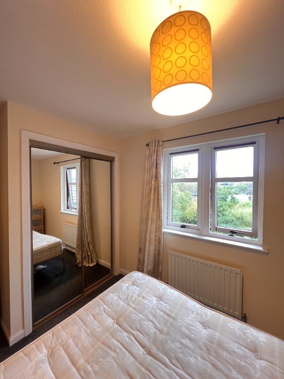 Both double bedrooms are spacious and benefit from built-in wardrobes, offering excellent storage without compromising on space. The bathroom includes a full-sized bath with overhead shower, adding both practicality and comfort.