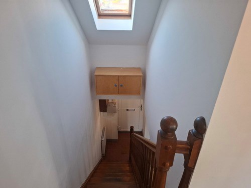 Upstairs, the generously sized master bedroom features a skylight, flooding the room with natural light and giving it an airy, contemporary feel. The second double bedroom benefits from practical built-in storage, while a well-appointed family bathroom completes the upper floor.