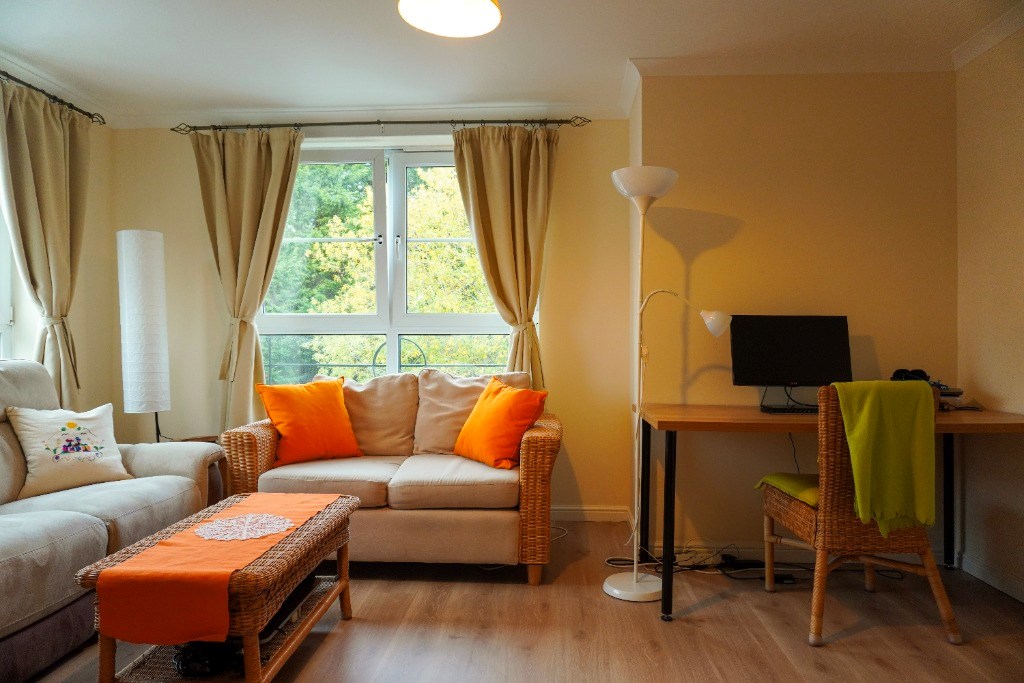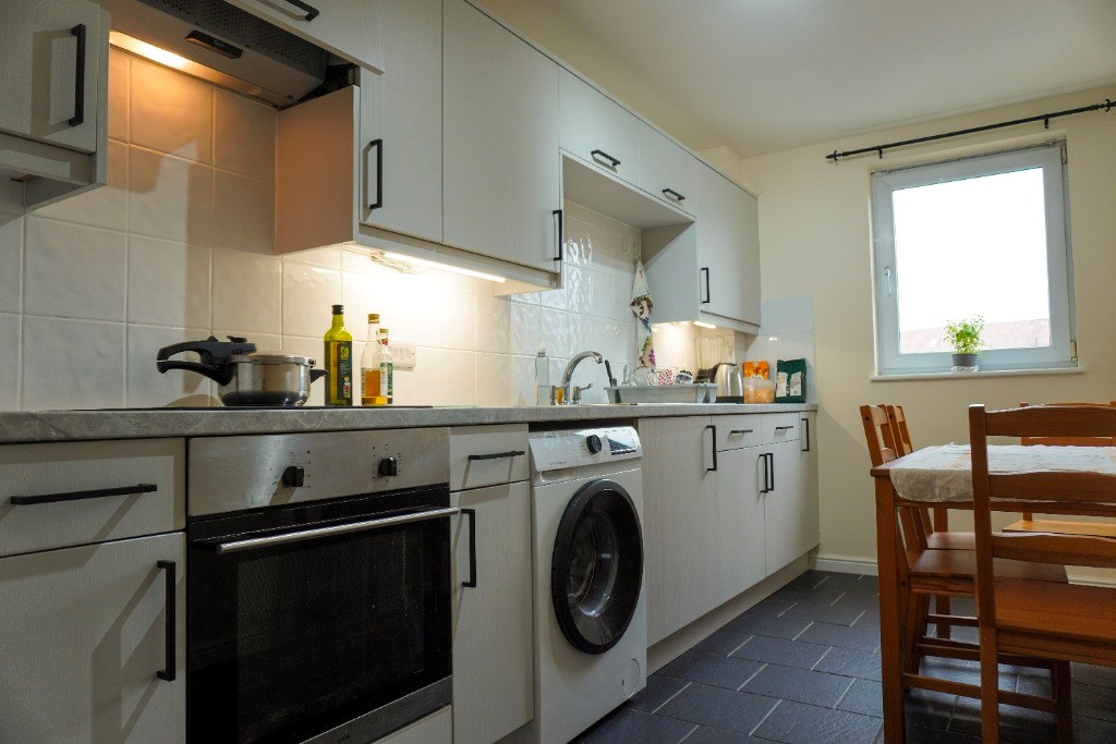 The second floor property comprises entrance hallway, sitting room with decorative fireplace, kitchen, master bedroom with ensuite, second double bedroom and family bathroom.