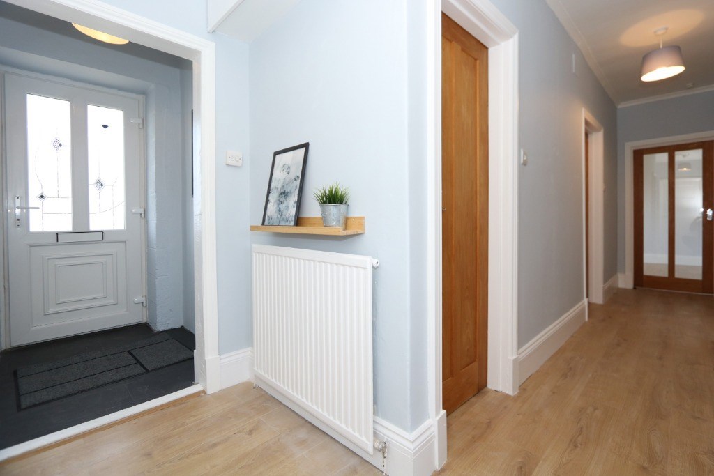 Internally the property comprises of a hallway with ample storage and utility cupboard, a bright living room with open southerly views, a contemporary fully fitted modern kitchen three well proportioned double bedrooms, all with storage and a modern bathroom with three piece white suite with shower over completes the accommodation.
