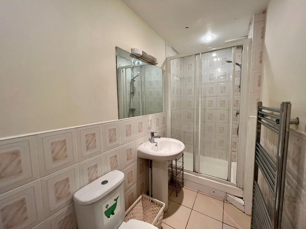 Shower room with shower, wash hand basin and WC.