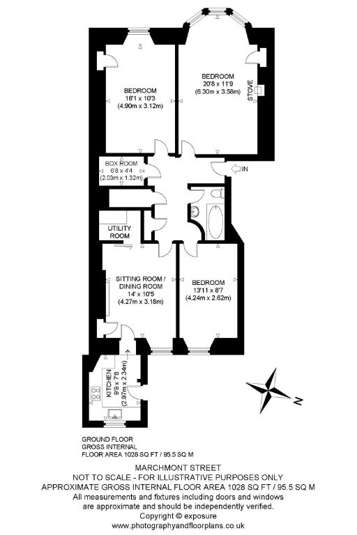 Located on the ground floor, accommodation comprises of: two double bedrooms, living room with large bay window and fireplace, bathroom, dining room with a table to seat 8, utility room, fully fitted kitchen and access to the rear to a shared garden.