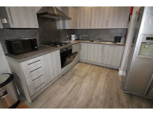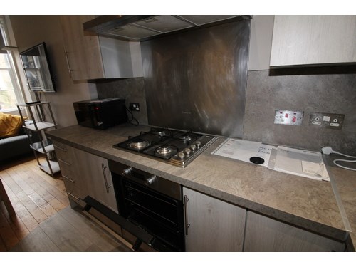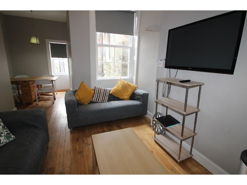 Large student flat available FROM MARCH 2026 The flat features three double bedrooms and one single bedroom, all equipped with desks and wardrobes. The modern fitted kitchen includes a single oven, hob, washing machine, dishwasher, and double fridge freezer. The living-dining area is furnished with a dining table, four chairs, and a large TV. The bathroom has a three-piece suite and a heated towel rail. The flat has solid wooden flooring, a neutral colour scheme, efficient gas central heating, and Wi-Fi.