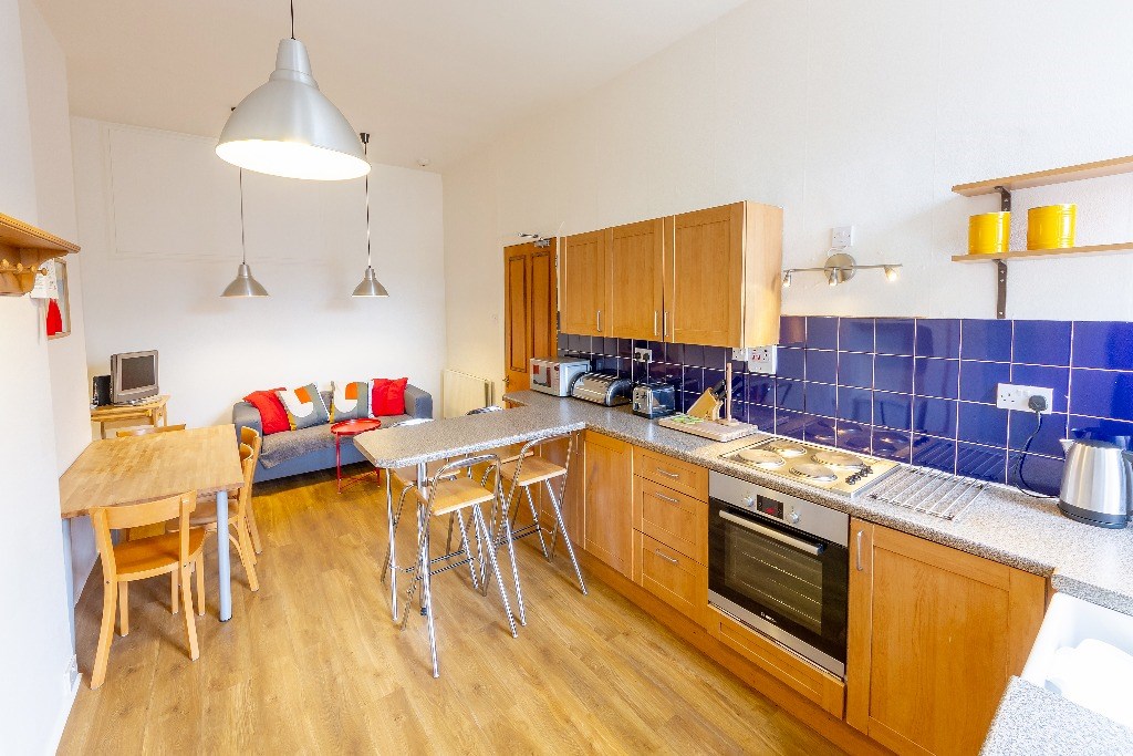 The flat comprises a welcoming hallway with storage, 4 spacious double bedrooms, large kitchen with dining area, breakfast bar and lounge area, separate utility room and bathroom with shower over bath. Each bedroom is furnished with a desk to provide ample study space. The kitchen is fully equipped with a dishwasher.