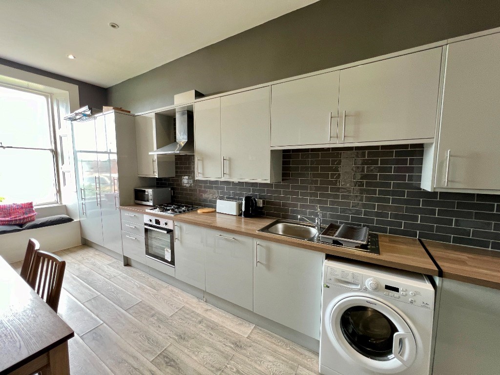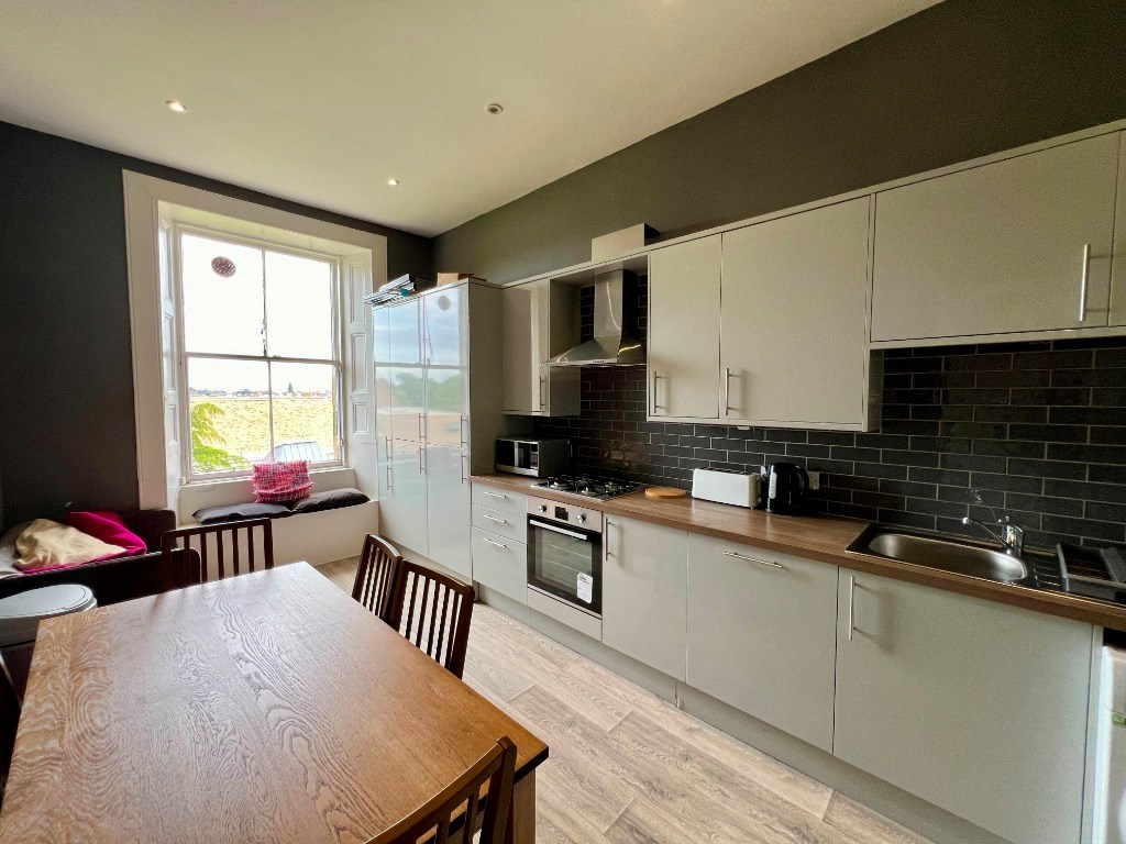 The recently refurbished fully fitted kitchen and dining area is spacious and bright, with beautiful views of Edinburgh Castle from your own home.