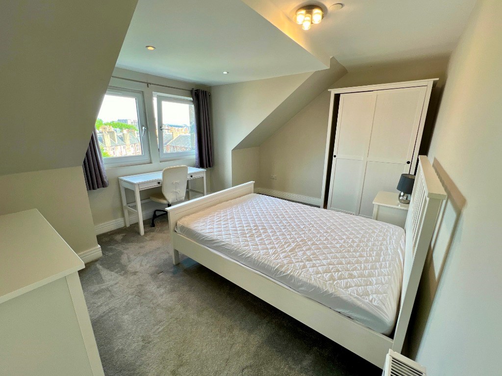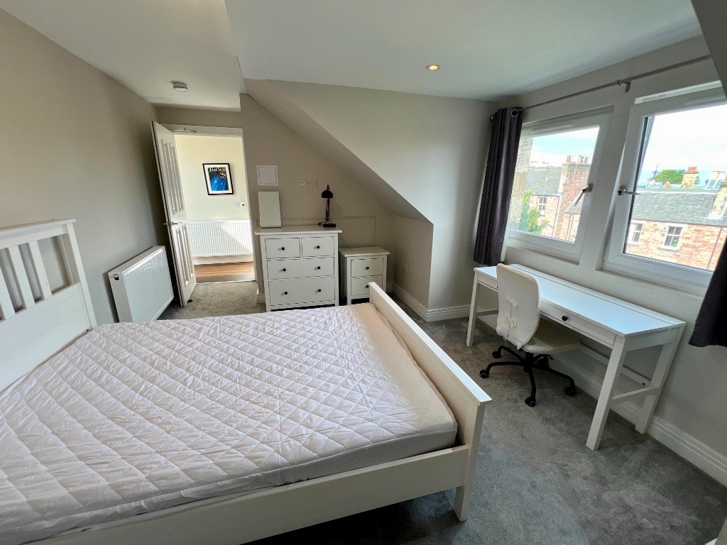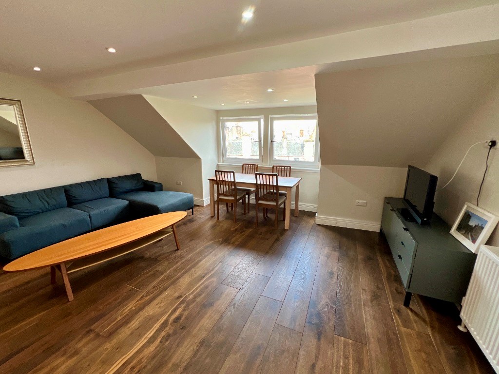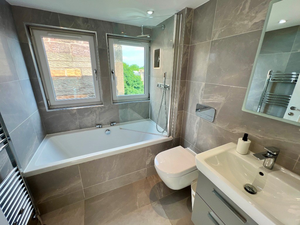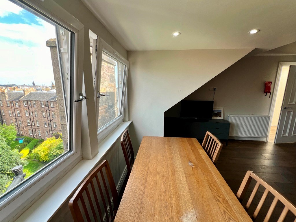 This brand new top floor flat has been built into the attic space of a traditional tenement and boasts superb views of Edinburgh and the castle.