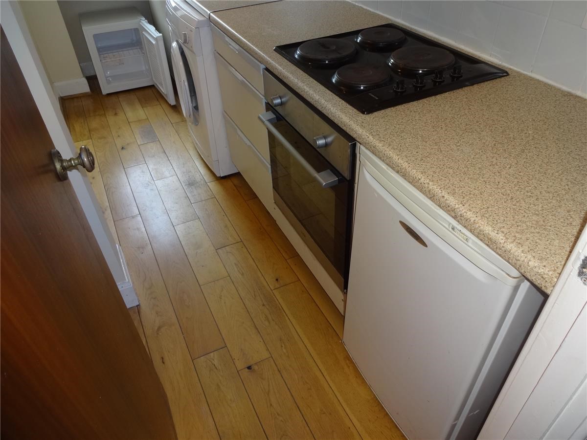 Accommodation comprises large sitting room with original cornicing and recessed shelving, double bedroom with built in wardrobes, galley style kitchen supplied with all white goods and bathroom with white suite, bath and electric shower above.