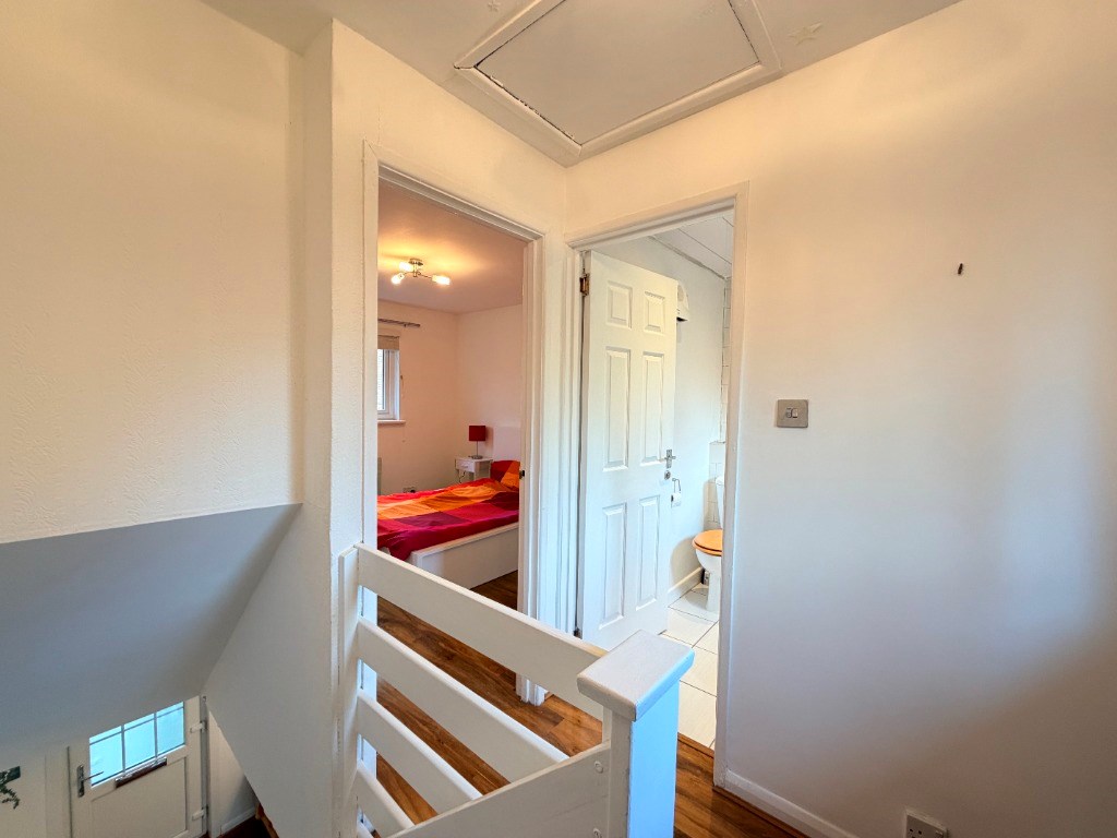 The well-proportioned double bedroom provides a peaceful retreat with the bathroom accessed from the hallway, features a modern suite including bath with overhead shower.