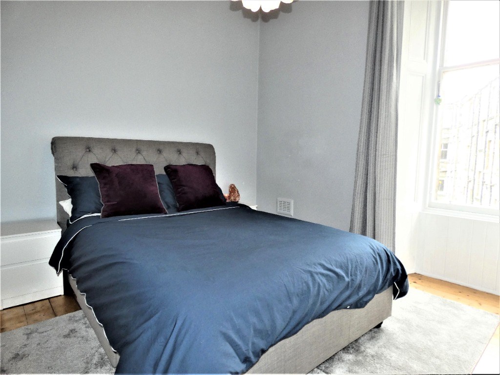 Spacious double bedroom with box room flat on 2nd-floor in a traditional tenement, near Holyrood Park and within easy reach of the City-Centre and Old Town. The flat is in excellent condition and furnished in a contemporary style. The accommodation is comprised of: bay window in the lounge with ample space for dining; a fully-fitted kitchen with integrated appliances; a delightful double-bedroom, box room; and a well-appointed bathroom with bath and shower. There is also a sizeable walk-in cupboard off the hallway. The flat benefits from gas central-heating and double-glazing.