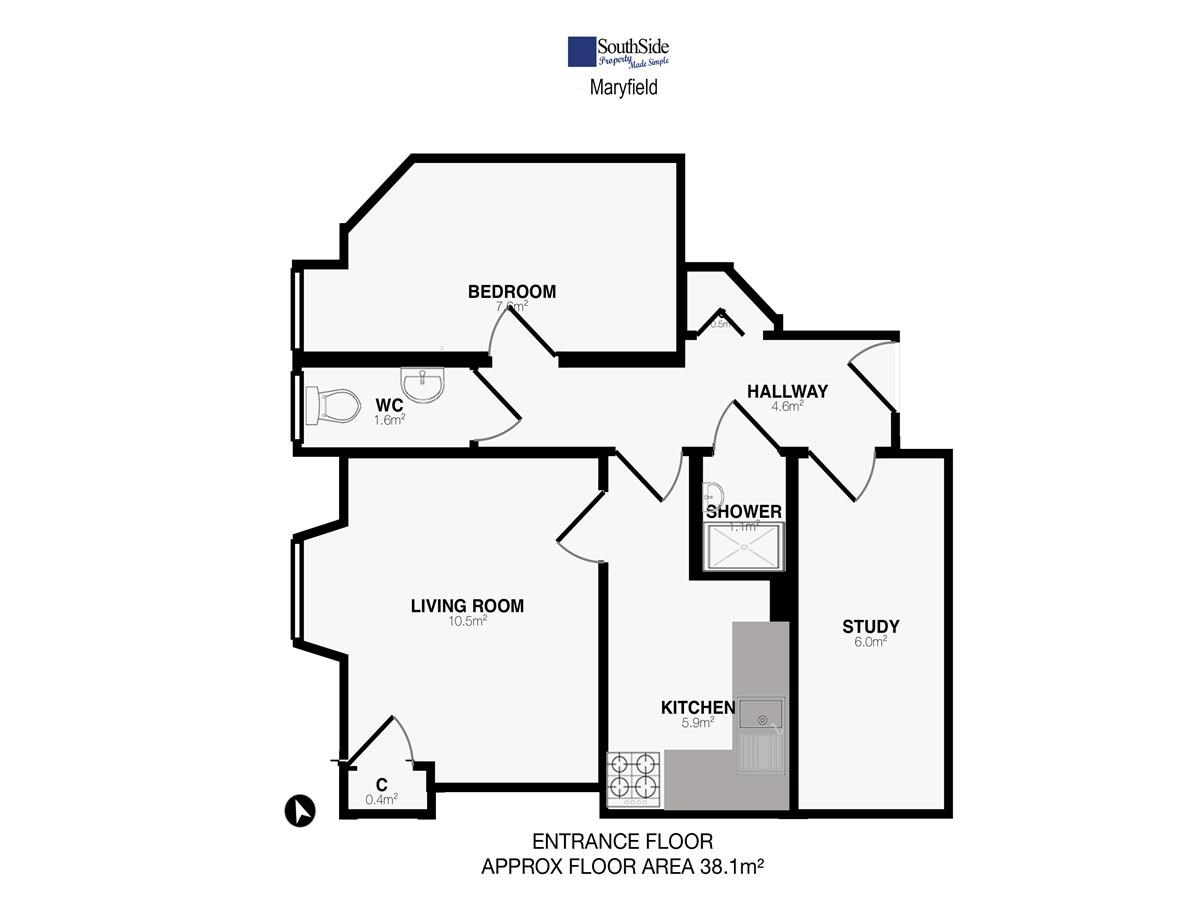 ~Total floor area = 42m²