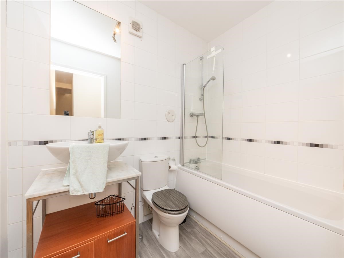 ~Family bathroom with tiled splashback and three-piece suite including shower over bath
