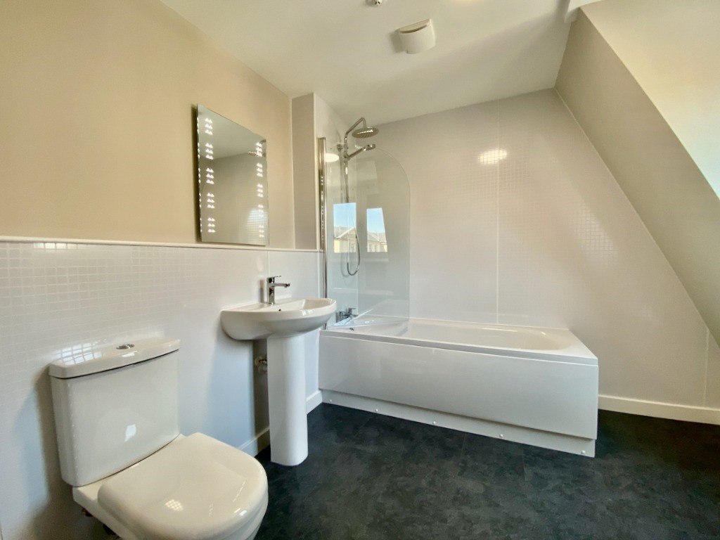 The upper floor accommodation comprises of a front facing master bedroom with an en-suite bathroom and fitted wardrobes and a further double bedrooms with fitted wardrobes.