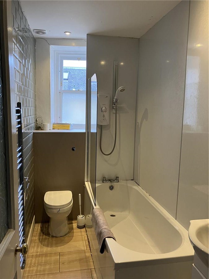 The modern bathroom has a power shower and the flat is heated by gas central heating.