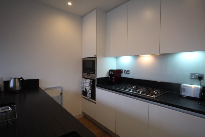 The apartment is light and airy, and would suit a single guest or couple. Accommodation comprises: hall, open plan living and kitchen, double bedroom and family bathroom. The kitchen features integrated appliances including, fridge freezer, oven, microwave and dishwasher. The living room features a dining table and seating for 4, television and plenty of space to relax. The bathroom has a shower over the bath and good storage too. Moving into the double bedroom, this is spacious and benefits from fitted wardrobe space. There is also a private parking space available.