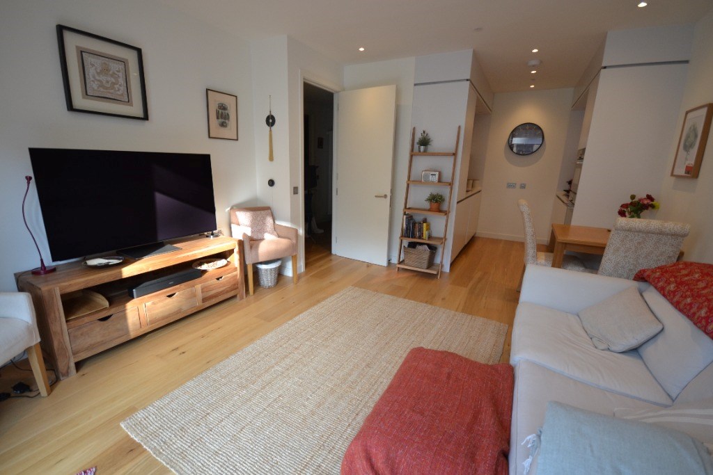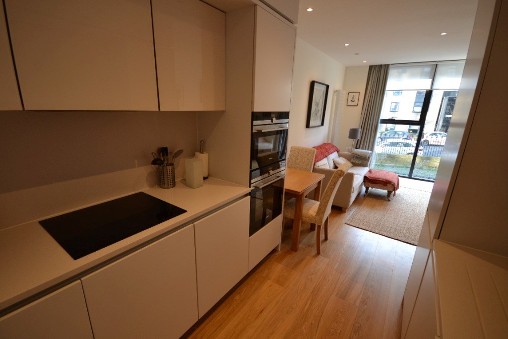 The property comprises entrance hallway, a bright open plan living and sitting area with excellent natural light, a modern kitchen with high-quality fittings, a double bedroom with built-in wardrobe, and a contemporary bathroom.