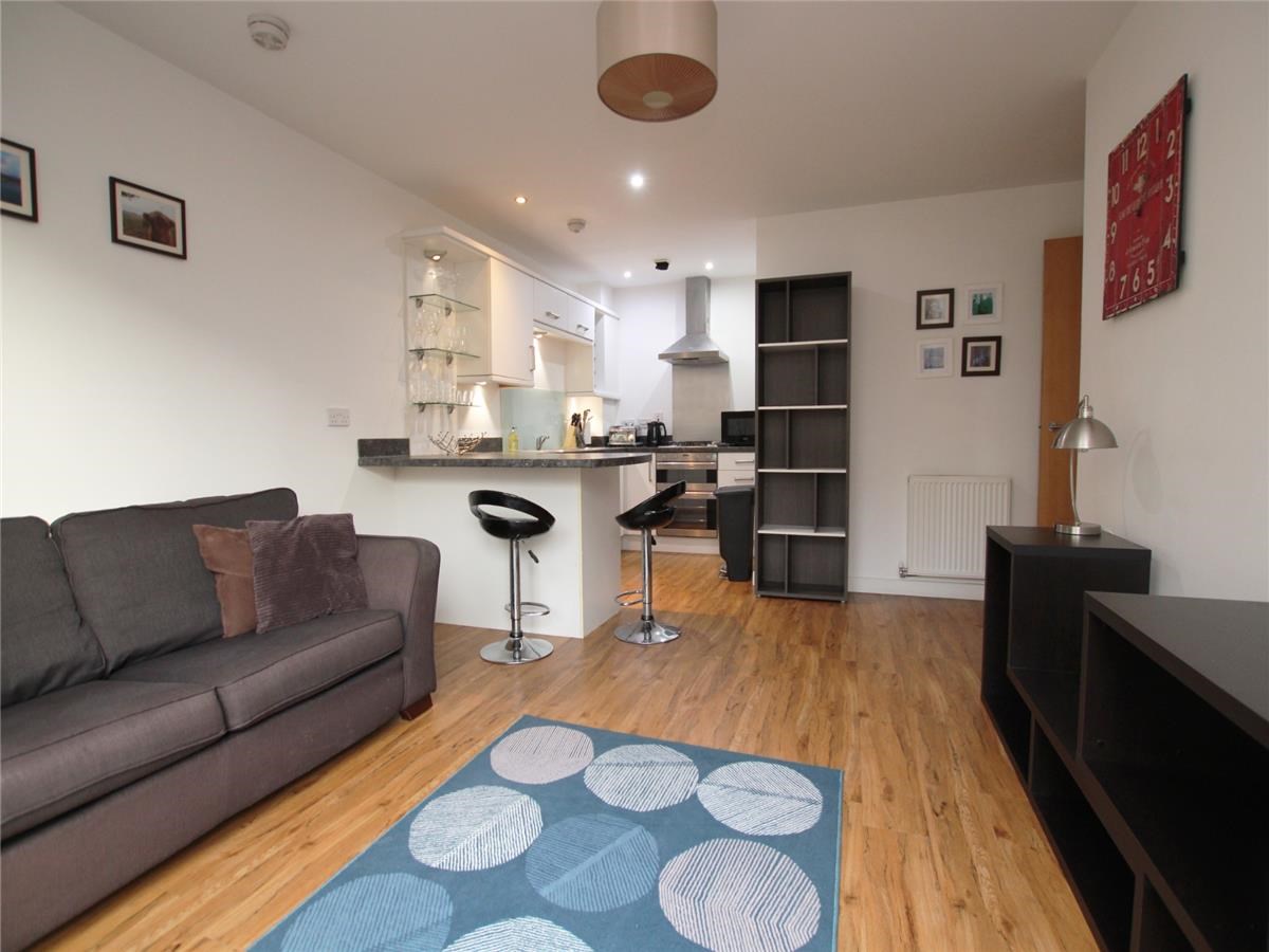 This property comprises; welcoming hallway with storage cupboard containing washing machine; large kitchen living area with breakfast bar and large windows; bright double bedroom with built in wardrobe; family bathroom with shower over bath.