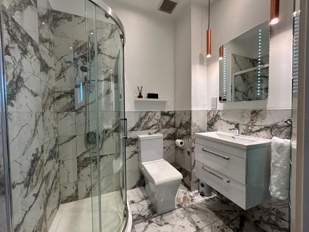 Accommodation is generous, with three well-proportioned bedrooms offering flexibility for families, sharers or those seeking additional guest or office space. The main bedroom enjoys the luxury of an en-suite shower room, while the family bathroom is finished to a high standard with a shower over bath, perfect for unwinding at the end of the day.