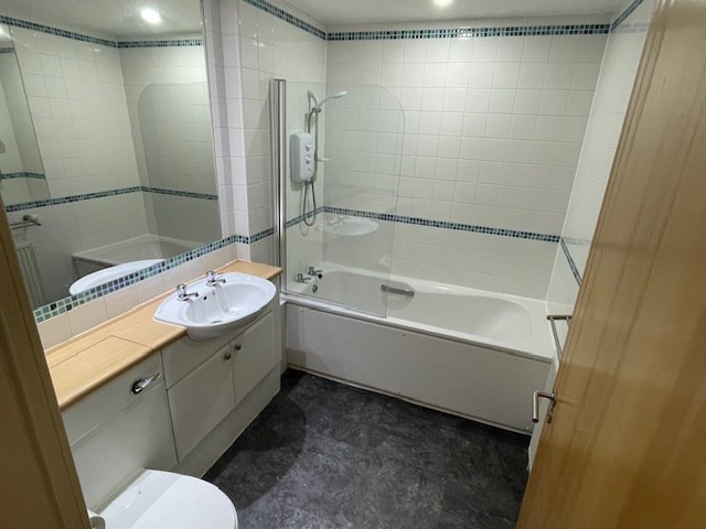 The flat has front facing lounge, fitted kitchen with integral fridge freezer, dishwasher, washer/dryer, oven and ceramic hob. Carpeted rear facing double bedroom. Large 3-piece bathroom with over bath shower.