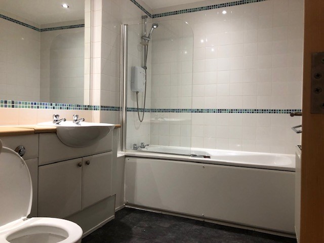 The flat has front facing lounge, fitted kitchen with integral fridge freezer, washer/dryer, dishwasher, oven and hob. Carpeted rear facing double bedroom. Large 3 piece bathroom with over bath shower. Storage cupboard in hallway.