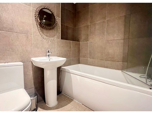 This spacious apartment features a bright and generously sized double bedroom, a stunning open-plan lounge/dining/kitchen area with integrated appliances, and beautiful high windows that flood the space with natural light. The modern bathroom is fully tiled and includes a shower over the bath.