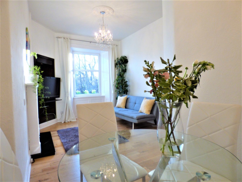 Beautifully-presented and bright, one-bedroom, third floor flat with a communal rear garden, set to the front of a traditional Victorian tenement. Located in the highly-regarded Morningside district of Edinburgh, south of the city centre, the property is offered to the market fully furnished. With south-facing views, the tastefully-decorated accommodation is comprised of: entrance hall with storage cupboards, a bright living room with dining recess and feature fireplace, a modern kitchen with fitted units and appliances, a double bedroom with large fitted wardrobes and a stylish bathroom with shower. This haven in the city features: light and neutral decor throughout, UPVC double glazing, gas central heating, generous storage, a secure entry system and impressive views of Morningside park and the Pentlands hills beyond. The property also benefits from a well-maintained communal rear garden/drying area, attractive stair with space to store a bicycle, as well as ample, unrestricted on-street parking to the front of the property and on surrounding streets.