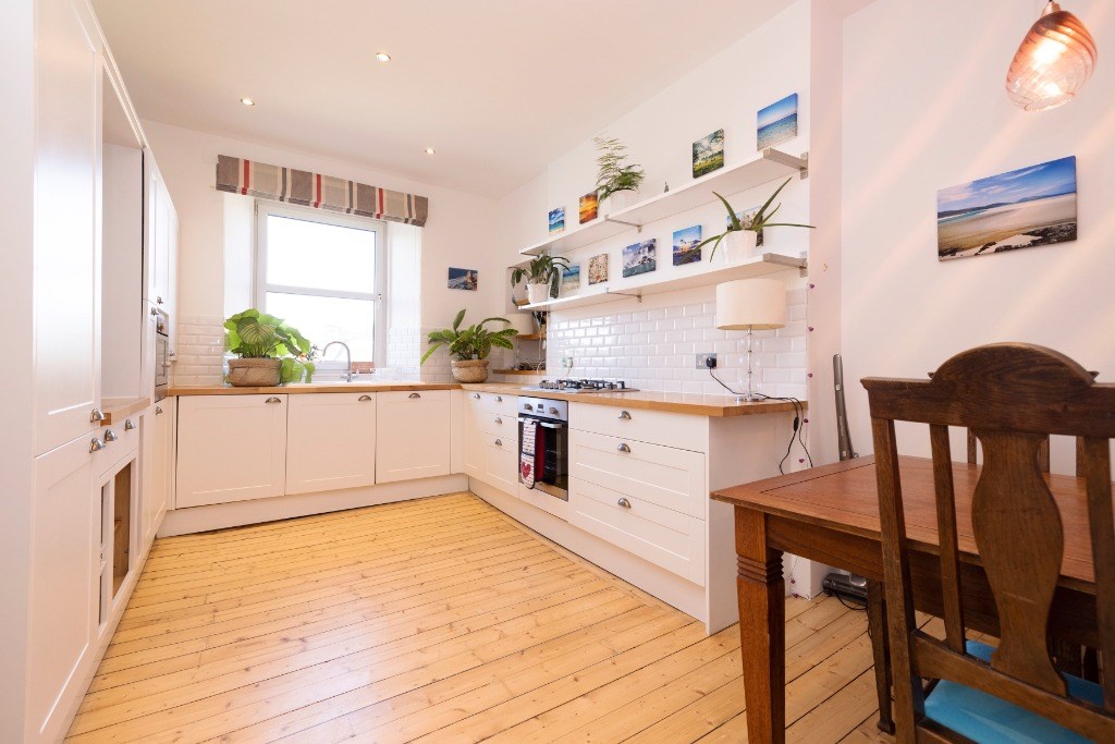 Located on the second floor, accommodation comprises; a large double bedroom, bathroom with shower over the bath, comfortable living room flooded with natural light from the bay window with a decorative fireplace, and a separate fully equipped kitchen with gas hob, oven, fridge, freezer and a dining table for 4 guests.