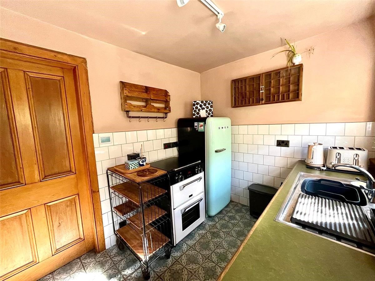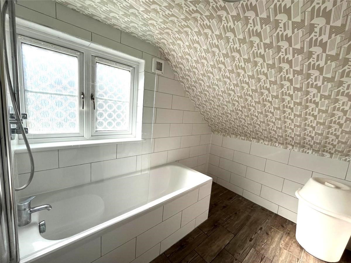 A welcoming vestibule opens into a spacious hallway leading to a cozy lounge with feature fireplace, and a separate dining room ideal for entertaining. The fully fitted kitchen provides a contemporary finish and overlooks a lovely south-facing rear garden, with garden shed for storage. Upstairs, there are two generously sized double bedrooms and a smaller third bedroom perfect as a study or nursery. The family bathroom includes a shower over the bath, complementing the home’s practical and well-balanced layout.