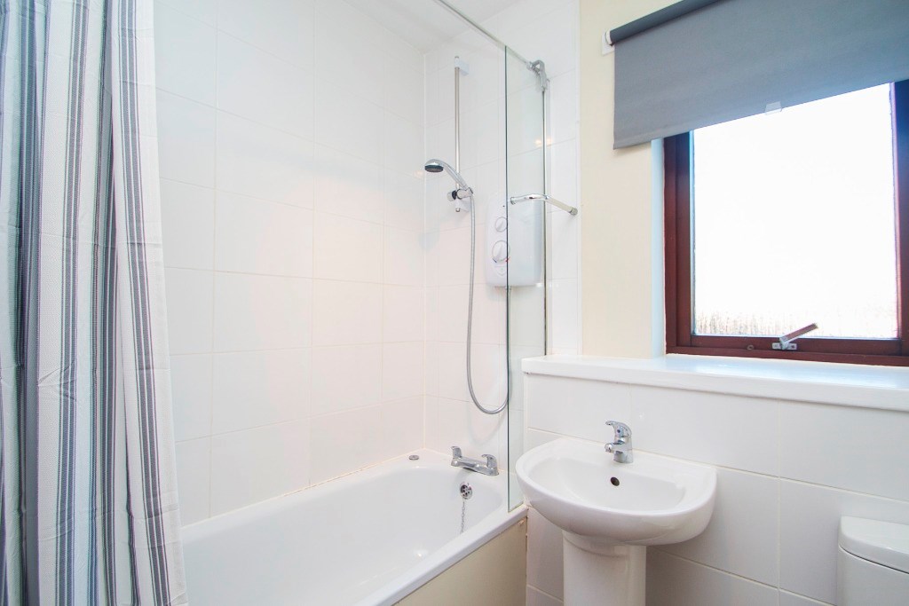 The modern kitchen is both stylish and functional, with ample natural light, while the generously sized living room provides a great space for relaxing or entertaining. The double bedroom is well proportioned and benefits from built-in wardrobes, offering excellent storage. The bathroom is fitted with a shower over the bath for convenience.