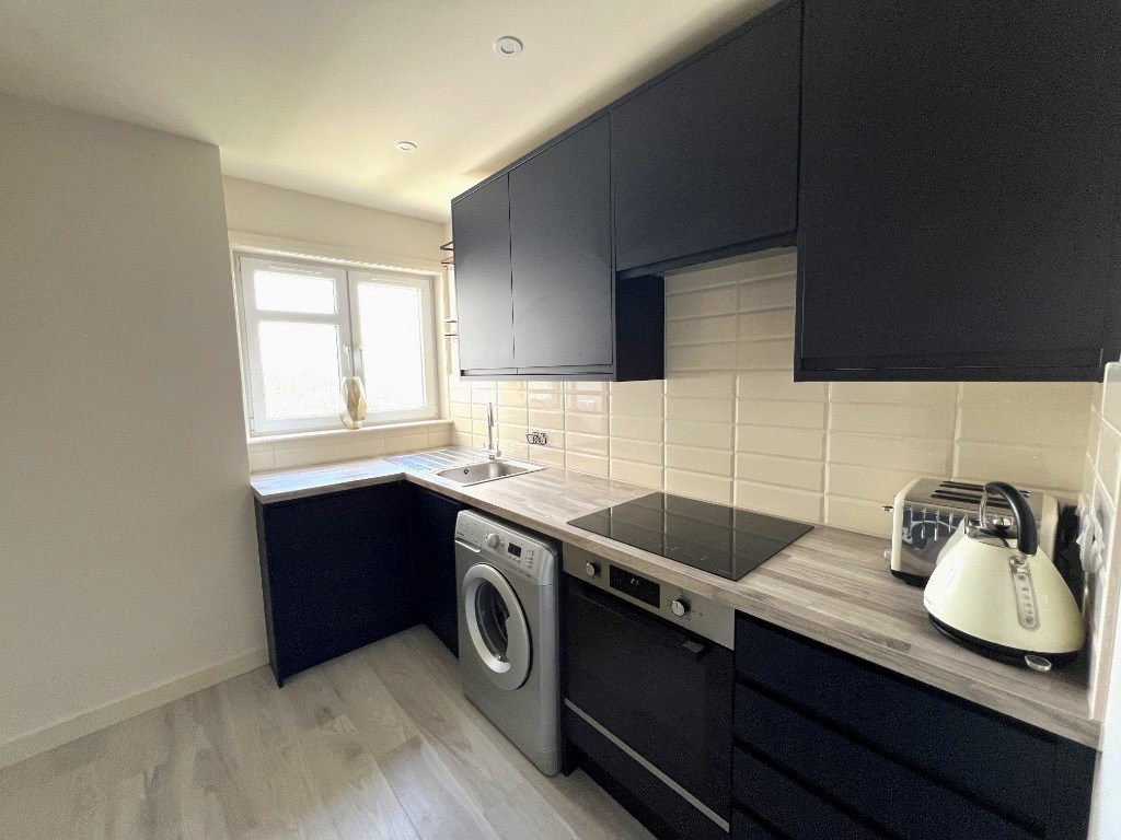 The apartment's recently installed kitchen comes well equipped with a washing machine, electric hob, electric oven, microwave, toaster, kettle and a freestanding fridge freezer. The kitchen has plenty of cupboard space and a separate hanging area for decorative glassware.
