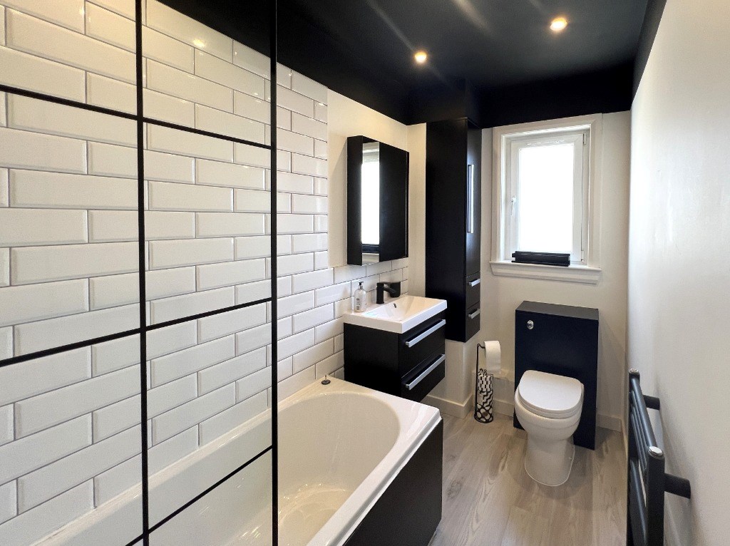 The modern bathroom has been finished to a high standard. It has a shower over bath, a heated towel rail and plenty of storage space (both over and under the wash hand basin).