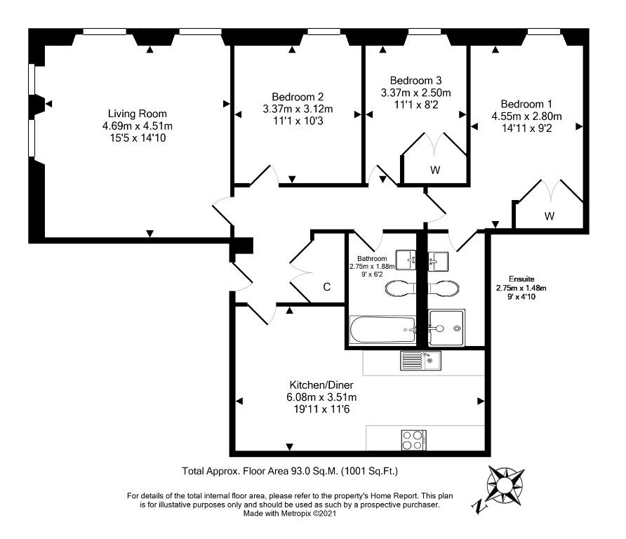 The property is part of the traditional Newbattle House. The door to the property opens onto a welcoming hallway which provides access to all rooms and encompasses a large storage cupboard. The stylish modern galley kitchen has plenty of storage space and multiple integrated appliances, including a dishwasher, washing machine, fridge, freezer, oven and microwave. The remainder of the room contains ample space for a large family dining area. The large, bright living room is located at the front of the apartment overlooking a small outside area pertaining to the property. All three double bedrooms have a neutral decor and have been finished to a very high standard. Two of the bedrooms (including the master) benefit from large fitted wardrobes. The master bedroom also has a modern en-suite shower room with a double shower. The family bathroom is also of superior finish: being fully tiled and boasting luxury features such as a large heated towel rail and underfloor heating.
