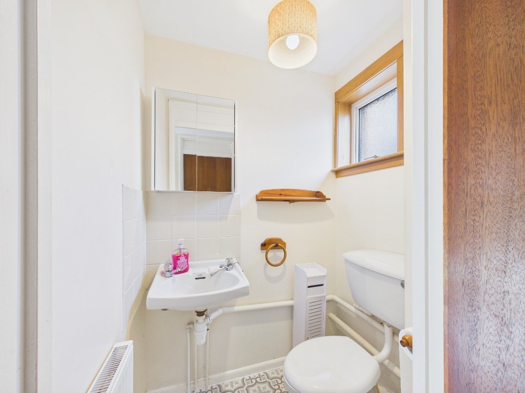 The lower level of this property comprises of: a welcoming entrance hall, with a large storage room and WC, a good sized livingroom, a separate dining room and a large kitchen with modern appliances including dishwasher. The livingroom is flooded with natural light from with sliding doors leading out to the rear paved garden. Upstairs are 3 good sized double bedrooms which all feature built in wardrobes, a family bathroom with shower over bath and additional storage space.