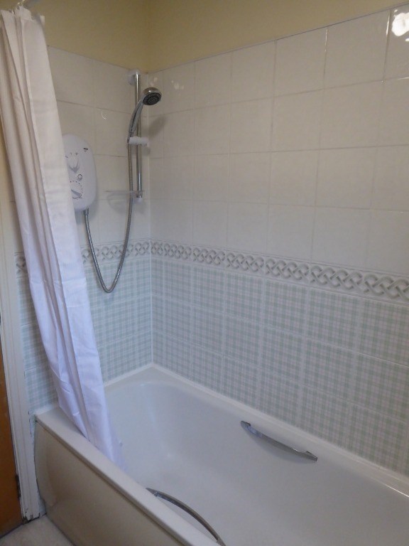 The double bedroom is generously sized and tastefully furnished, while the bathroom features a shower over bath.