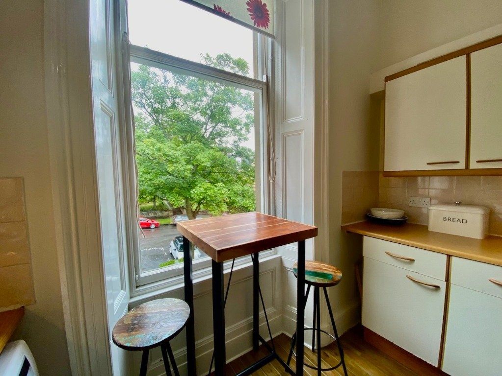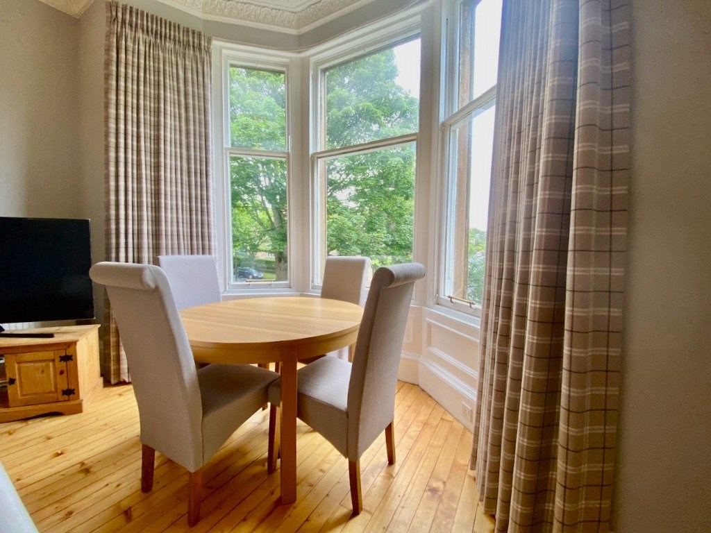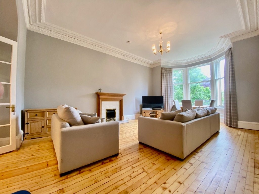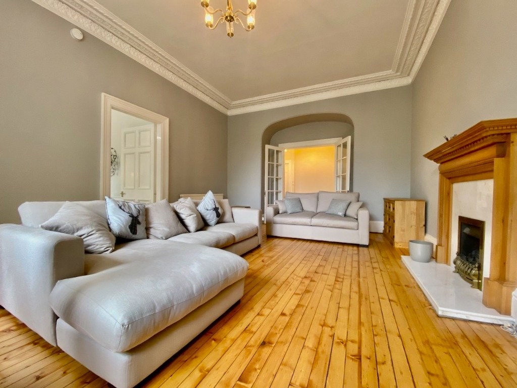 The grand lounge has huge windows and high ceilings and enjoys a lovely green and open aspect into Murrayfield Avenue. The lounge features a fireplace and gas fire.