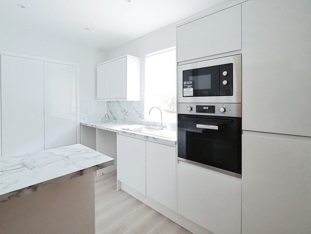 Upstairs, the master bedroom occupies the third level and features an en-suite modern shower room, ensuring additional privacy and convenience. Two further bedrooms on the middle level along with a modern family bathroom provide flexible accommodation.