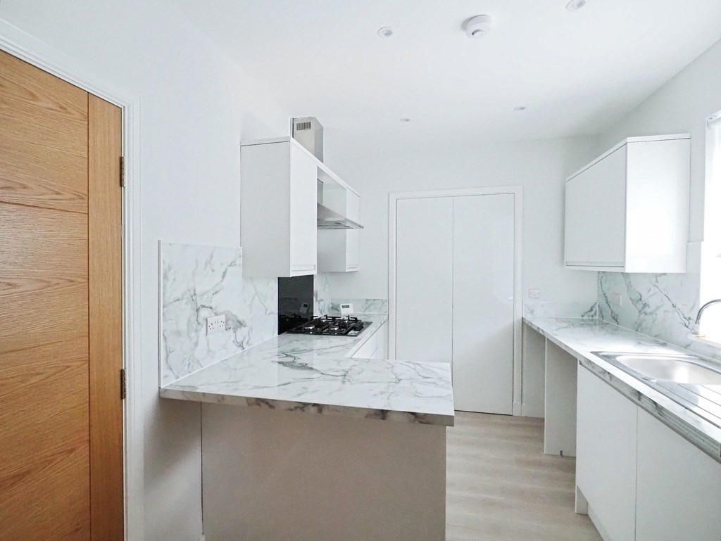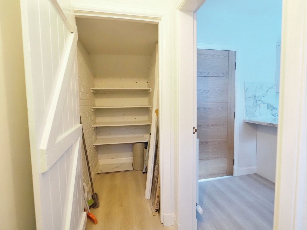 The ground floor features a spacious reception room with wood flooring, providing an ideal area for both relaxation and entertaining. The newly installed high-spec kitchen is enhanced with built-in pantries, while modern floor coverings and new blinds are fitted throughout the property. The house offers ample storage options on all levels.