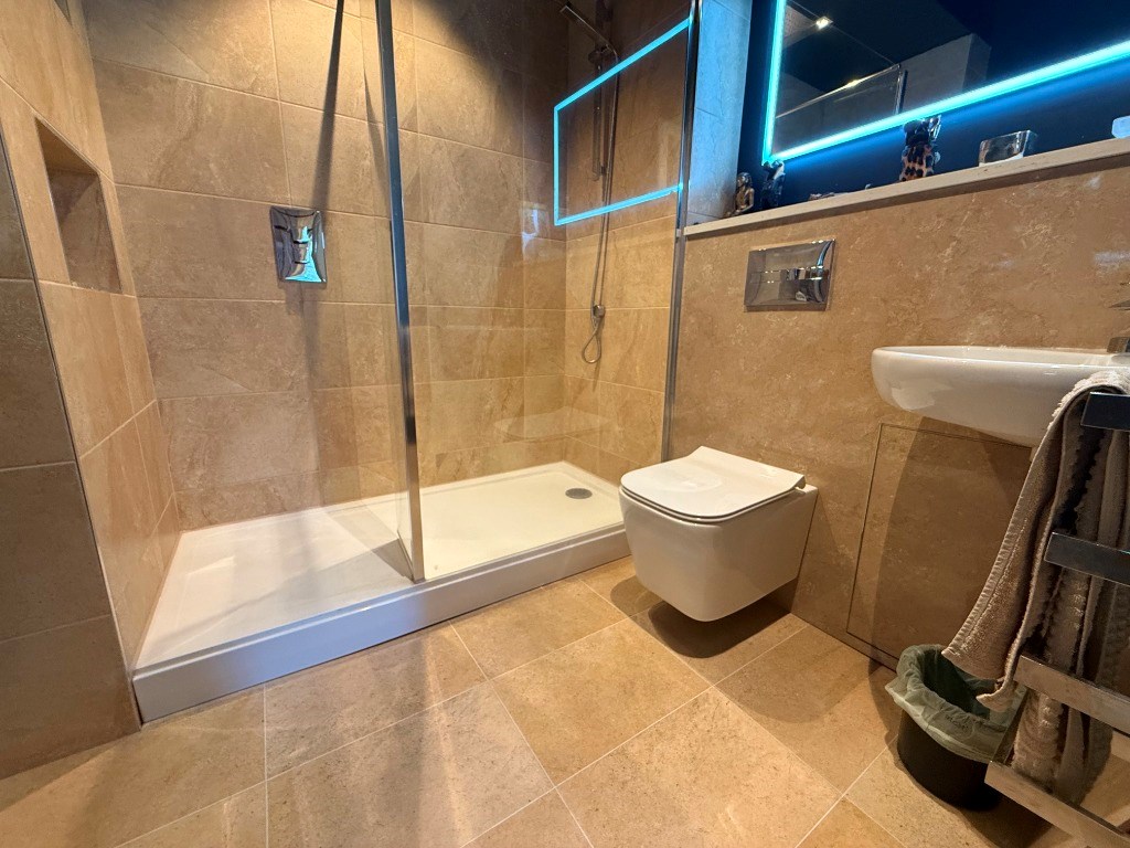 At the back of the property there is a modern fully fitted dining kitchen with larder storage. Off the hallway is a large master bedroom with modern ensuite shower room, a further family bathroom with separate shower to the bath, a further double bedroom and separate WC.