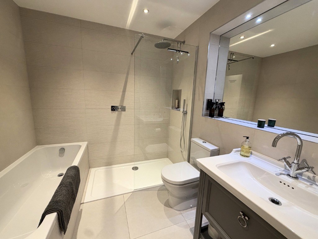 This spacious property offers a bright and comfortable living area, a well-appointed modern kitchen, dining room, a bathroom with separate bath and shower, WC, three generously sized bedrooms with ample storage space, one of which has an ensuite shower room.