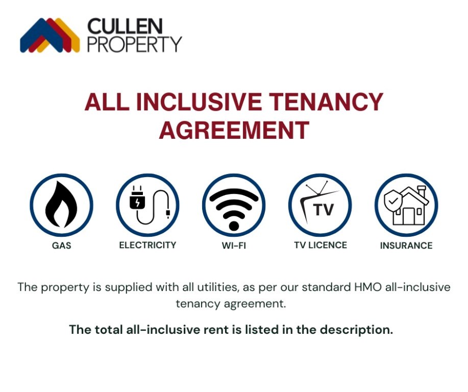 Utilities - The property can be supplied with all utilities included, as per our standard HMO all-inclusive tenancy agreement.