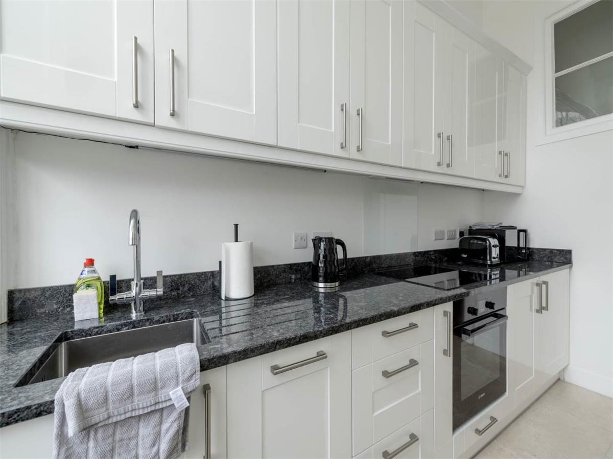The bright and spacious property sits on the ground level, elevated and giving more privacy. The accommodation comprises: entrance hallway, stunning drawing room with original features. Kitchen to the rear including a dishwasher and dining table and chairs. A large bedroom also to the rear and shower/wet room with two sinks.