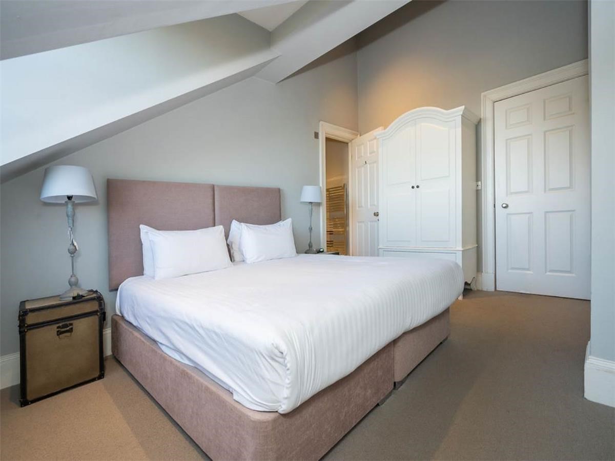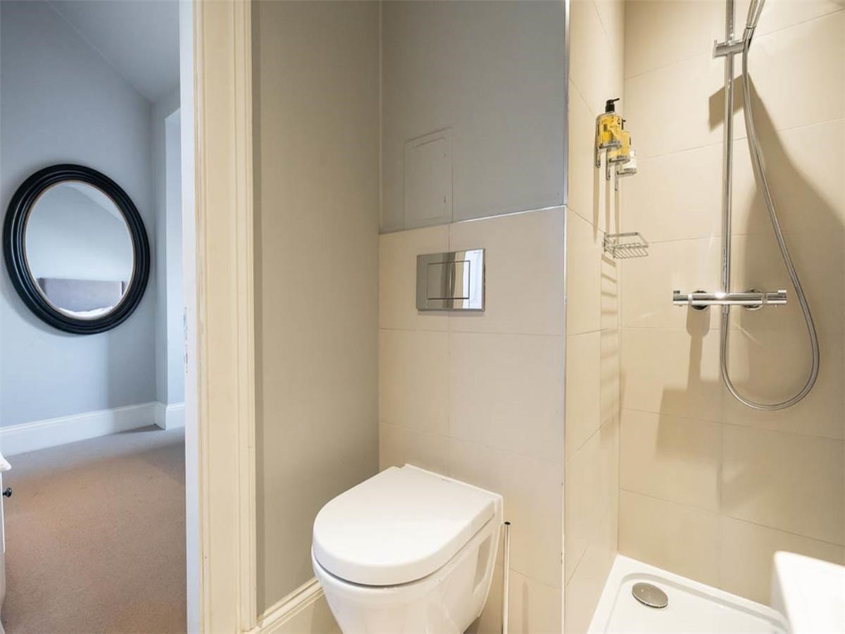 Two large double bedrooms to the rear, main bedroom with en-suite shower room, family bathroom with shower over bath tub. The property further benefits from gas central heating, good storage and access to Queen Street Gardens for a nominal fee.