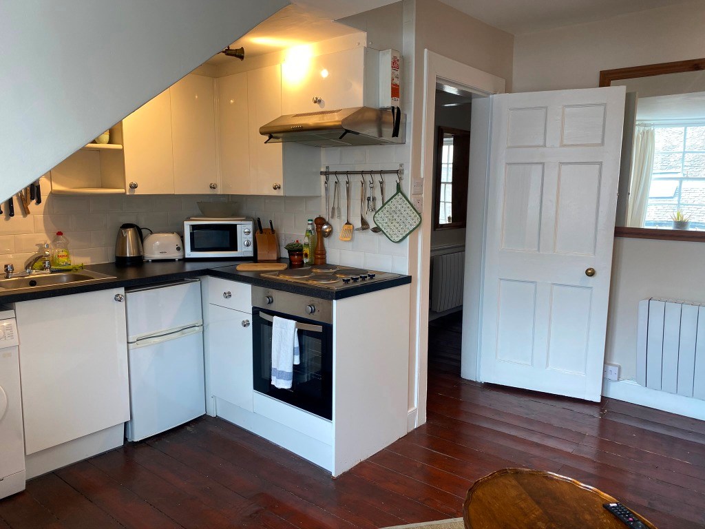 The accommodation comprises an open plan living room/kitchen, one double bedroom, and bathroom with shower over bath.