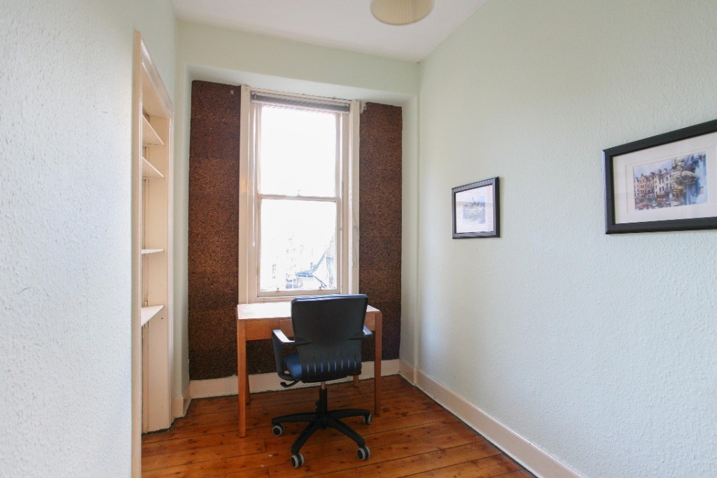 Accommodation: This second floor property has 2 double bedrooms, a study, kitchen/living room and full bathroom. The kitchen has been decorated and is now neutral rather than blue.