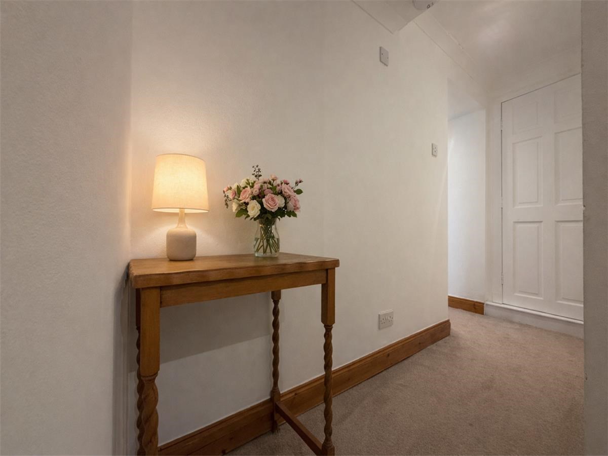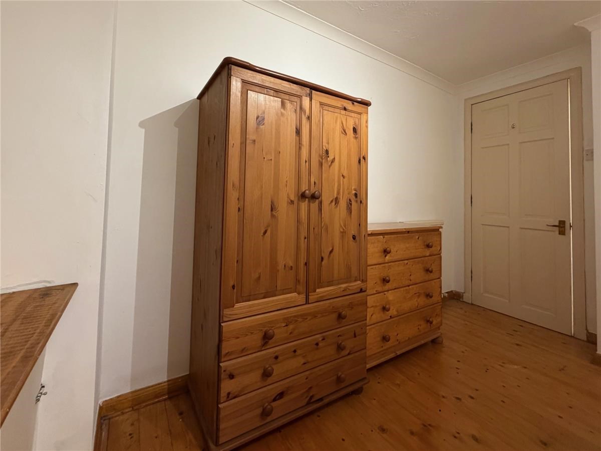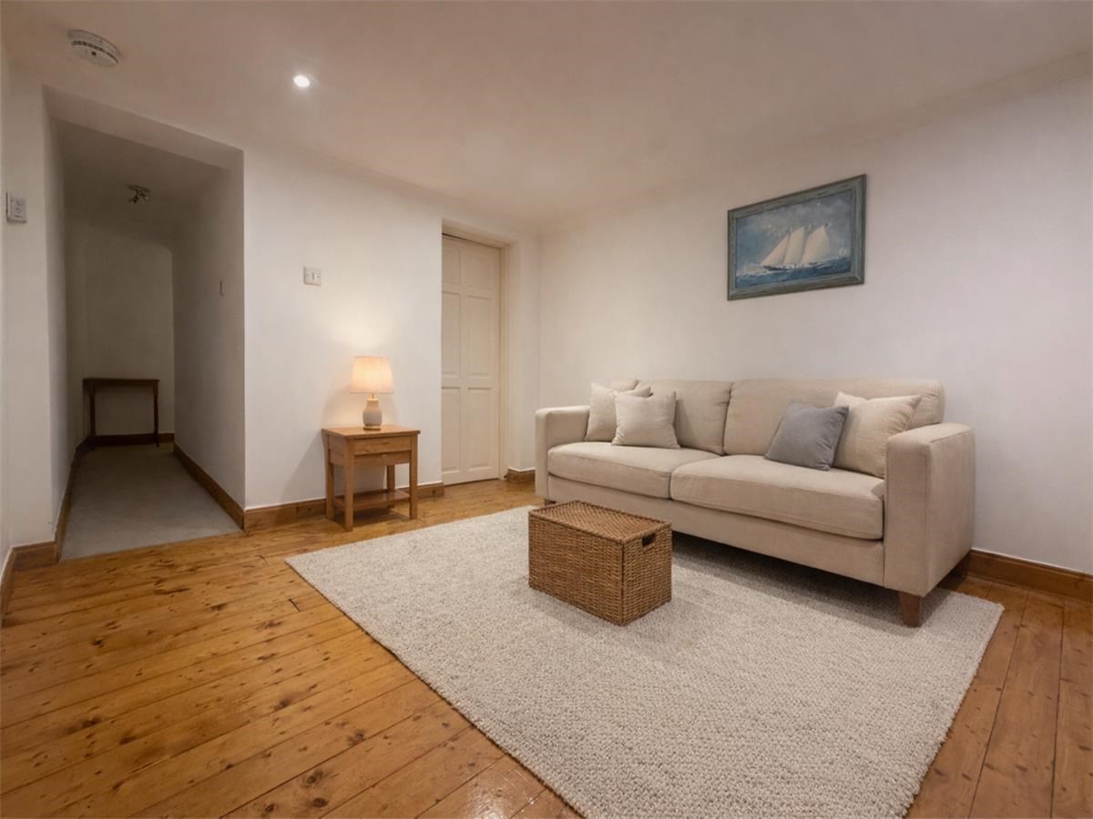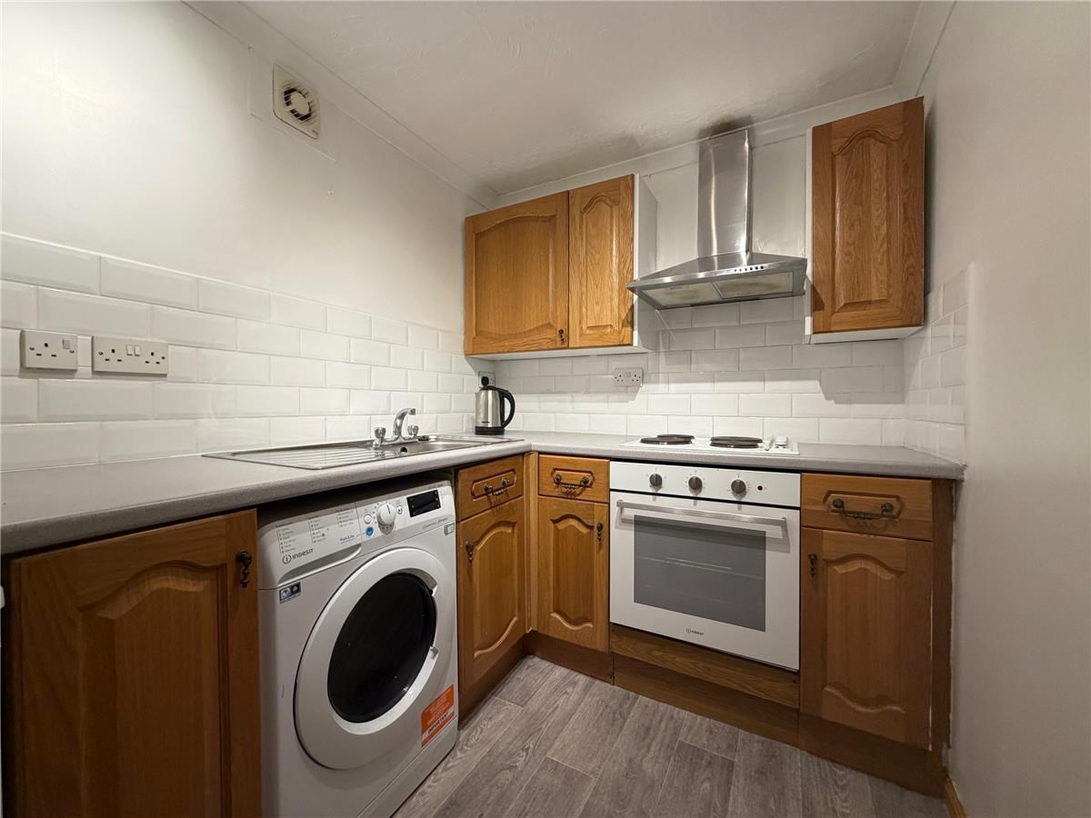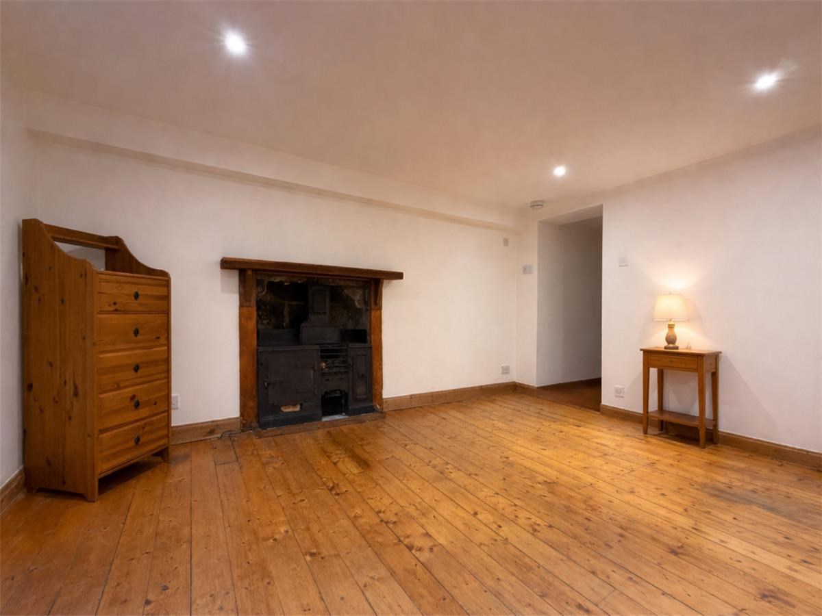 The property comprises a hallway with a spacious storage cupboard, sitting/dining room with a period feature non-working Aga fireplace. A separate kitchen is fitted with a range of base and wall mounted units, fully tiled splashback and integrated oven, stove and extractor fan, fridge and freezer. A well-proportioned double bedroom and a bathroom with a three-piece white suite and mains shower over the bath.